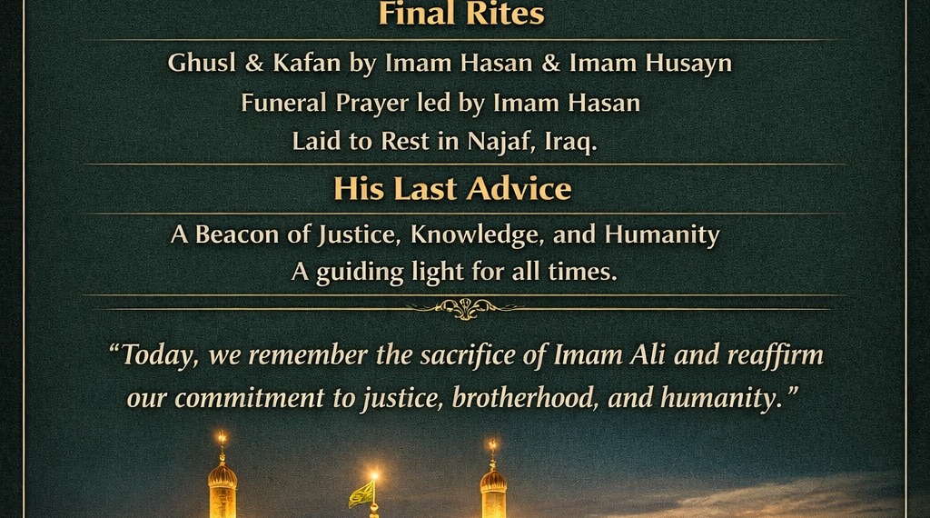 21 रमज़ान: शहादत-ए-मौला Ali ibn Abi Talib — किसने दिया ग़ुस्ल, किसने पढ़ाई नमाज़-ए-जनाज़ा और कहाँ दफ़न किए गए?