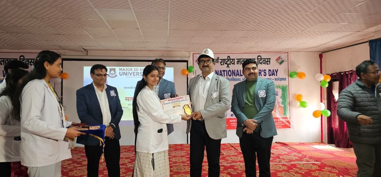 फर्रुखाबाद। 16वें राष्ट्रीय मतदाता दिवस के अवसर पर भारत निर्वाचन आयोग के निर्देशानुसार भोजपुर स्थित विश्वविद्यालय परिसर में एक भव्य मतदाता दिवस कार्यक्रम का आयोजन किया गया। कार्यक्रम का शुभारम्भ जिला निर्वाचन अधिकारी/जिलाधिकारी आशुतोष कुमार द्विवेदी ने दीप प्रज्ज्वलित कर तथा मां सरस्वती के चित्र पर माल्यार्पण कर किया।