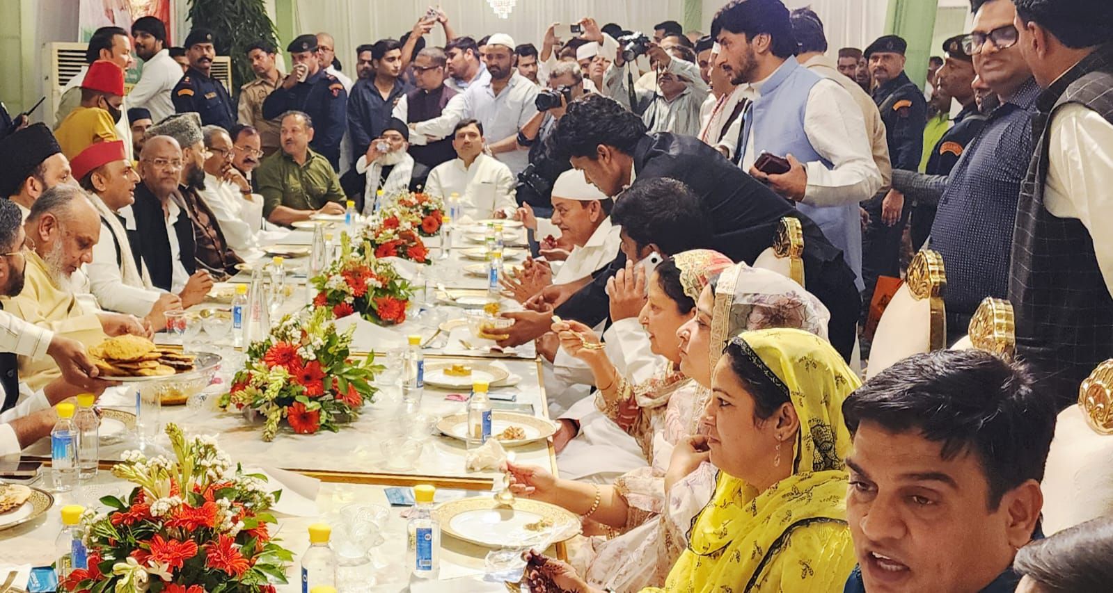 इफ्तार कार्यक्रम में Maulana Khalid Rasheed Firangi Mahali समेत कई उलेमा और विभिन्न धर्मों के धर्मगुरु भी मौजूद रहे। कार्यक्रम के दौरान विधायक शाहिद मंजूर ने गुलदस्ता भेंट कर और शॉल ओढ़ाकर अखिलेश यादव का स्वागत किया।