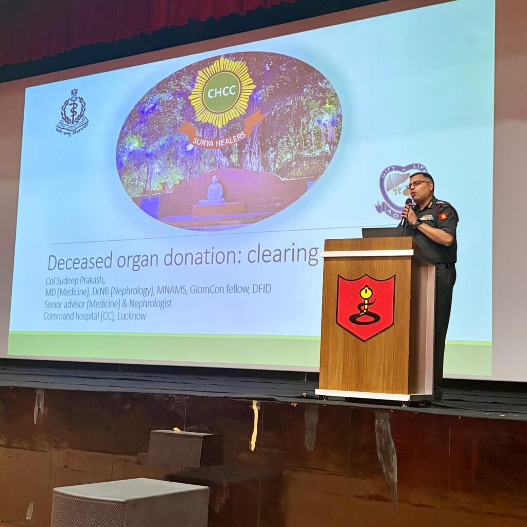 सत्र को Col (Dr) Sudeep Prakash, सीनियर एडवाइजर (मेडिसिन) एवं नेफ्रोलॉजिस्ट, Command Hospital (CC) द्वारा संबोधित किया गया। उन्होंने भारत में अंगों की मांग और उपलब्धता के बीच बढ़ती खाई पर चिंता जताई और इससे जुड़े मिथकों को दूर करने पर जोर दिया।