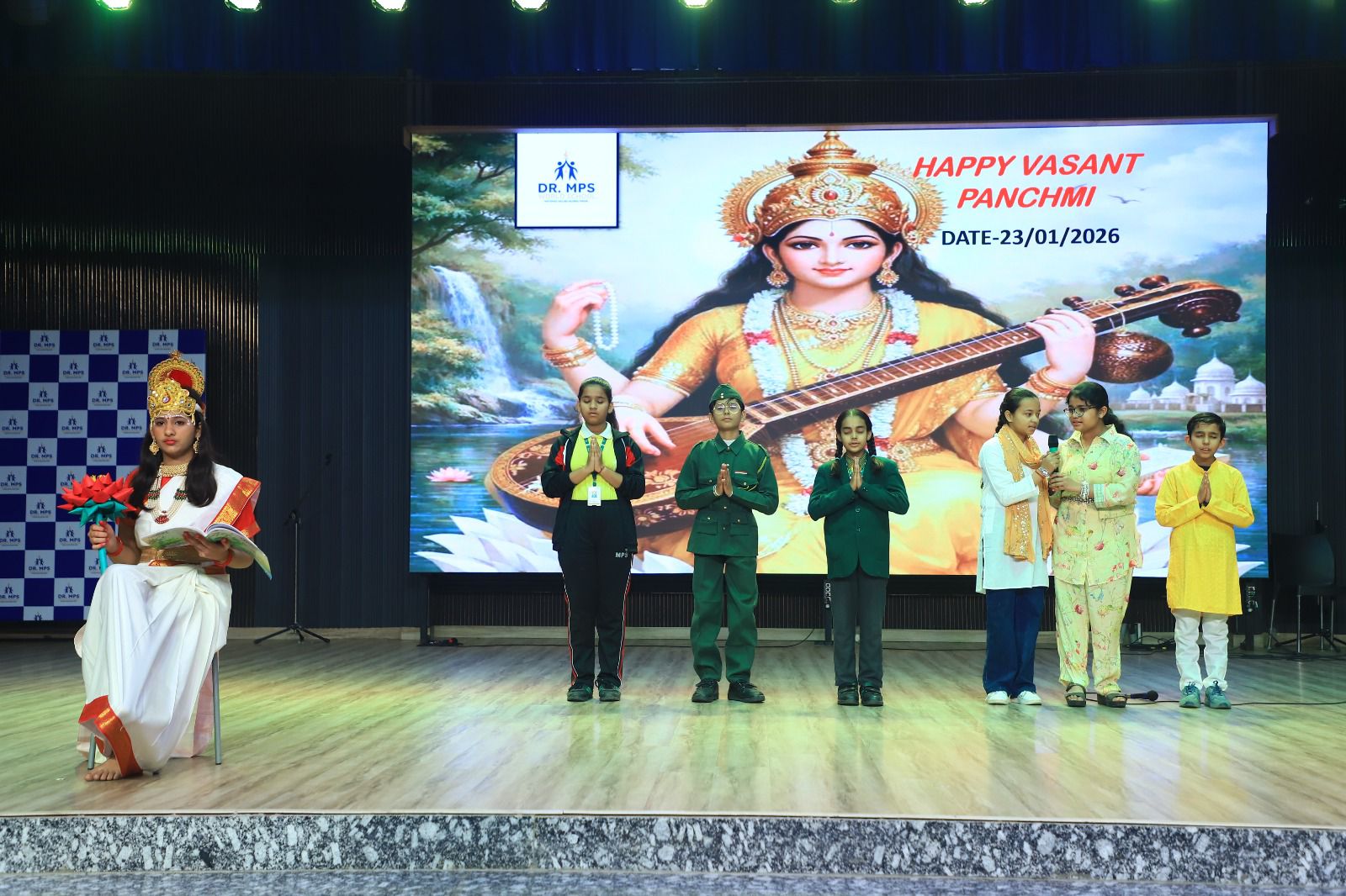 Dr. MPS World School organized a grand, cultural, and nation-inspiring programme with great enthusiasm and dignity on the auspicious occasion of Basant Panchami and the birth anniversary of the great freedom fighter Netaji Subhas Chandra Bose. The school campus was filled with the glow of yellow hues, melodious music, and a deep sense of patriotism.