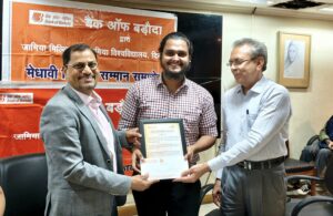 कार्यक्रम के संयोजक डॉ. मुकेश कुमार मिरोठा ने कहा कि बैंक ऑफ बड़ौदा की यह योजना कई वर्षों से हमारे विद्यार्थियों को प्रोत्साहित कर रही है और हम आशा करते हैं कि भविष्य में ऐसी और योजनाएं आएंगी| कार्यक्रम का संचालन सुश्री नूरी निशात, प्रबंधक, राजभाषा विभाग, बैंक ऑफ बड़ौदा ने किया| कार्यक्रम में बड़ी संख्या में विद्यार्थियों की सक्रिय उपस्थित रही |