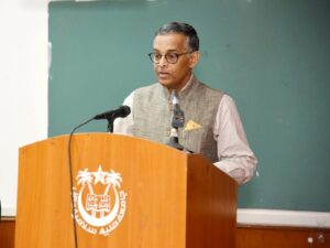 प्रो. संजीव कुमार शर्मा ने गांधी की महानता और उनके आलोचकों के प्रति सम्मान की विशेषता पर जोर दिया।