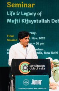 نئی دہلی، جمعت العلماءِ ہند نے کانسٹیٹیوشن کلب، دہلی میں جنگ آزادی کے عظیم سپاہی مفتی کفایت اللہ دہلوی کو یاد کرتے ہوئے ایک خصوصی سیمینار کا انعقاد کیا۔