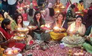 बांदा। साजन के लिए सजी-धजी सुहागिनों ने शुक्रवार को करवा चौथ पर यह गीत खूब बजाया और सुना की “बुरा हो भला हो कैसा भी हो,मेरा पती तो मेरा देवता है”। अधिकांश विवाहिताओं नें इसी गीत की गुनगुनाहट के साथ देर शाम चांद और अपने पति के दीदार किए। अपने हमसफर की लंबी उम्र के लिए कामना की। दिनभर निर्जला व्रत रखा। चांद को अर्घ्य देकर शिवचंद्र व कार्तिकेय का पूजन अर्चन कर पति के हाथों जल ग्रहण कर व्रत का परायण किया।